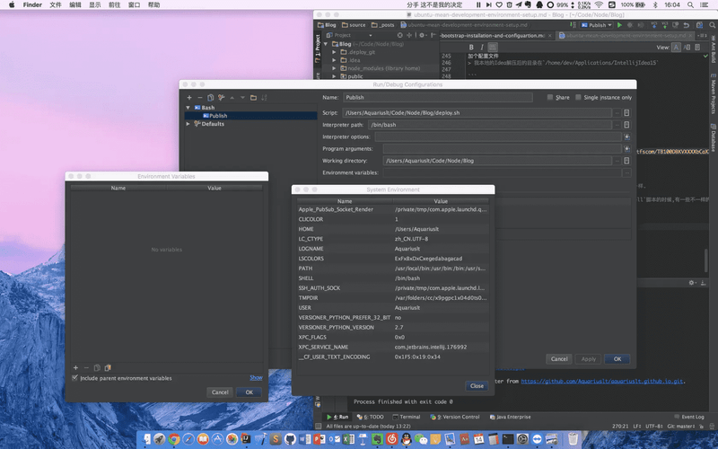 run configuration里面添加新的Node.js脚本或者shell脚本的时候,有一些不一样的地方就是通过 Ubuntu 桌面启动 Idea,会读不到用户级别的环境变量. 所以有一在配置一些的脚本的时候,需要确保运行时的环境变量,查看方法