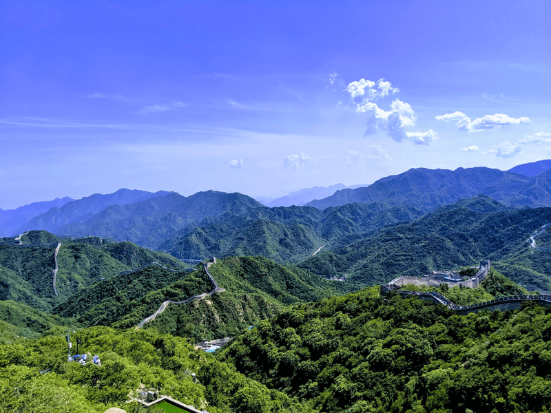 在人海中边蠕动边拍照,终于来到好汉坡,赶紧打卡拍了 N 张全景,其中自我感觉有几张特别有 feel,选取了其中一张呈上。
